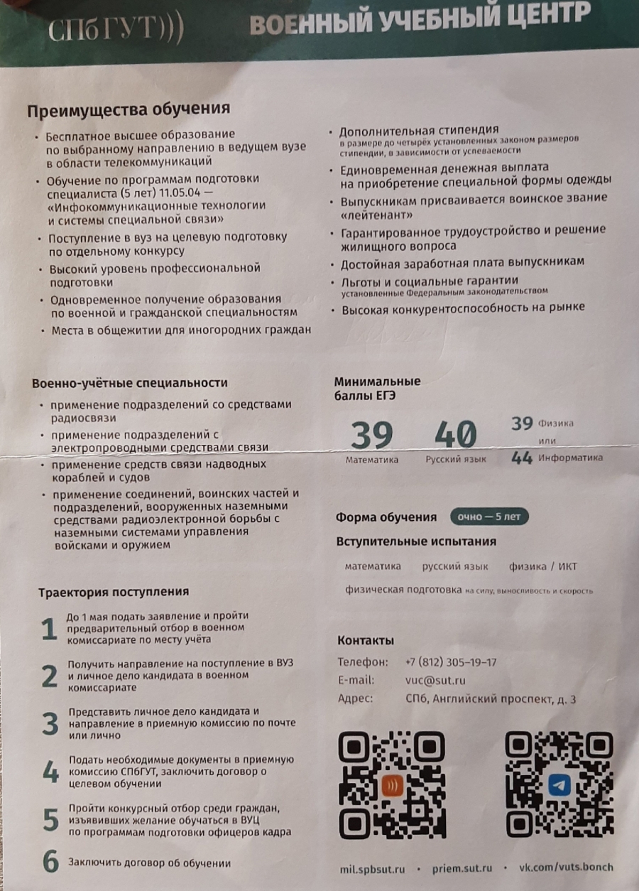 Санкт-Петербургский государственный университет телекоммуникаций имени профессора М. А. Бонч-Бруевича информирует.